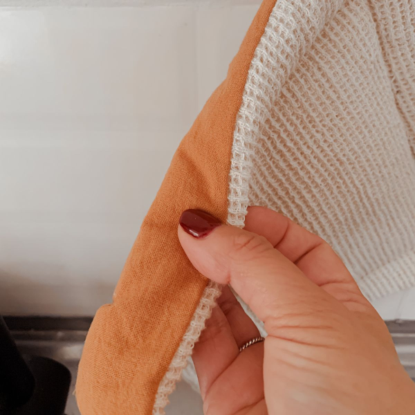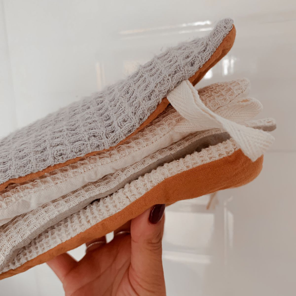 Agarradera confeccionada en nido de abeja de un lado y tusor del otro.